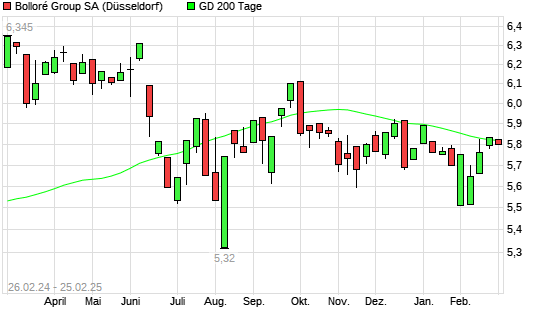 Mit dem Anstieg auf 5,83 EUR hat die Bollore-Aktie am 24.02.2025 die 200-Tage-Linie nach oben gekreuzt.