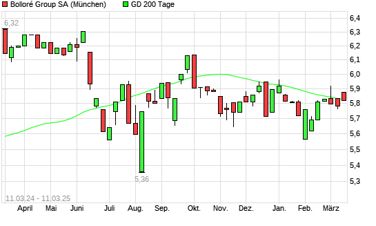 Mit dem Anstieg auf 5,83 EUR hat die Bollore-Aktie am 10.03.2025 die 200-Tage-Linie nach oben gekreuzt.