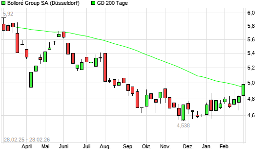 Mit dem Anstieg auf 4,96 EUR hat die Bollore-Aktie am 27.02.2026 die 200-Tage-Linie nach oben gekreuzt.