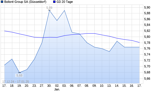 Mit dem Rücksetzer auf 5,78 EUR hat die Bollore-Aktie am 16.01.2025 die 20-Tage-Linie nach unten gekreuzt.