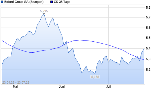 Mit dem Rücksetzer auf 5,30 EUR hat die Bollore-Aktie am 22.07.2025 die 38-Tage-Linie nach unten gekreuzt.