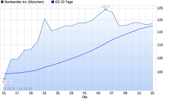 Mit dem Anstieg auf 117,55 EUR hat die Bombardier-Aktie am 14.10.2025 die 20-Tage-Linie nach oben gekreuzt.