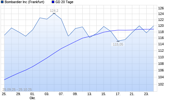 Mit dem Anstieg auf 119,95 EUR hat die Bombardier-Aktie am 24.10.2025 die 20-Tage-Linie nach oben gekreuzt.