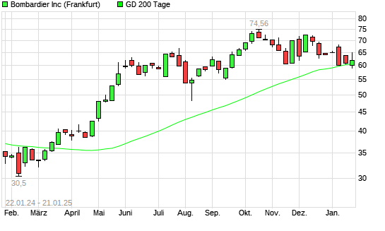 Mit dem Anstieg auf 65,00 EUR hat die Bombardier-Aktie am 20.01.2025 die 200-Tage-Linie nach oben gekreuzt.