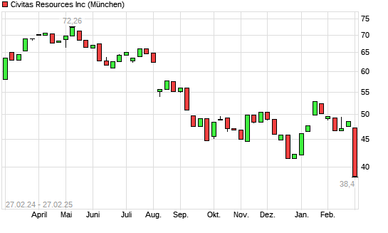 Mit dem Rücksetzer auf 37,86 EUR hat die Bonanza Creek Energy-Aktie (ISIN US17888H1032) am 26.02.2025 ein neues 3-Jahres-Tief erreicht und damit den Kurs vom 25.02.2025 eingestellt.