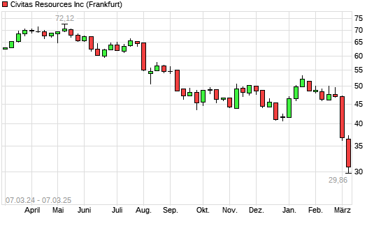 Mit dem Rücksetzer auf 30,27 EUR hat die Bonanza Creek Energy-Aktie (ISIN US17888H1032) am 06.03.2025 ein neues 3-Jahres-Tief erreicht und damit den Kurs vom 05.03.2025 eingestellt.