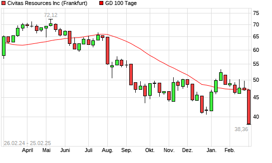 Mit dem Anstieg auf 47,07 EUR hat die Bonanza Creek Energy-Aktie am 24.02.2025 die 100-Tage-Linie nach oben gekreuzt.