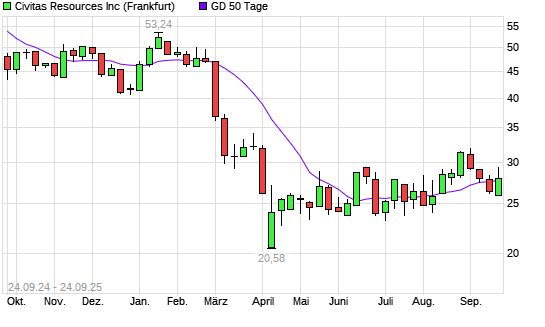 Mit dem Anstieg auf 28,23 EUR hat die Bonanza Creek Energy-Aktie am 23.09.2025 die 50-Tage-Linie nach oben gekreuzt.