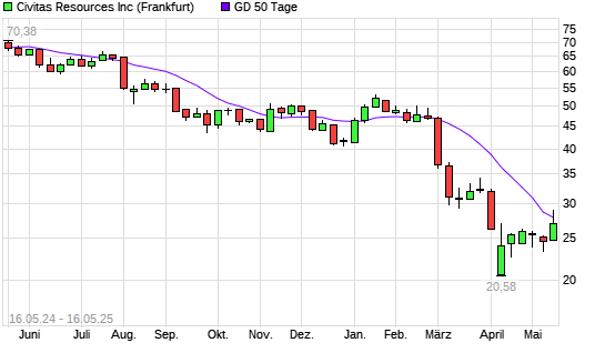 Mit dem Rücksetzer auf 26,15 EUR hat die Bonanza Creek Energy-Aktie am 15.05.2025 die 50-Tage-Linie nach unten gekreuzt.