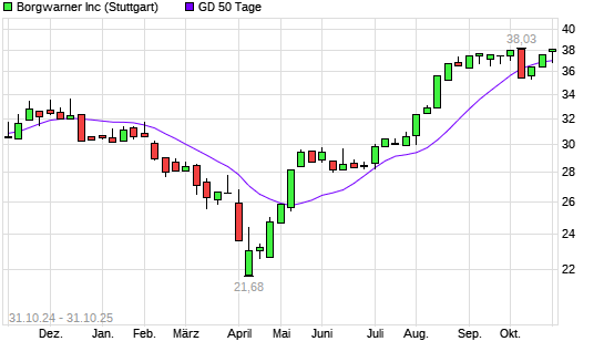 Mit dem Rücksetzer auf 36,76 EUR hat die BorgWarner-Aktie am 30.10.2025 die 50-Tage-Linie nach unten gekreuzt.