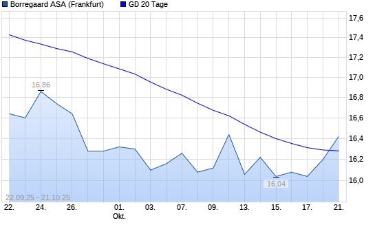 Mit dem Anstieg auf 16,56 EUR hat die Borregaard-Aktie am 20.10.2025 die 20-Tage-Linie nach oben gekreuzt.