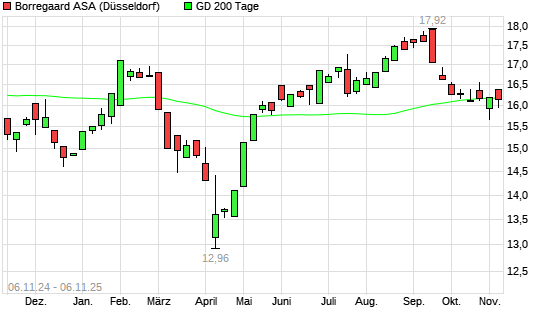 Mit dem Anstieg auf 16,18 EUR hat die Borregaard-Aktie am 05.11.2025 die 200-Tage-Linie nach oben gekreuzt.