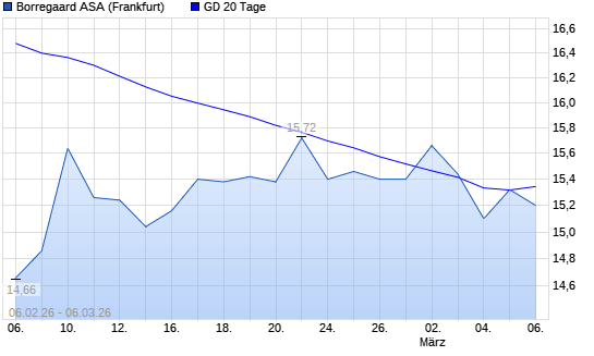 Mit dem Rücksetzer auf 15,30 EUR hat die Borregaard-Aktie am 05.03.2026 die 20-Tage-Linie nach unten gekreuzt.