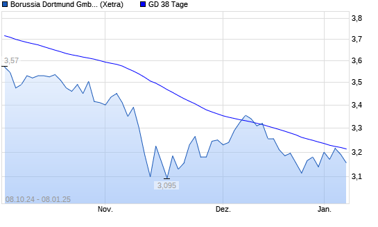 Mit dem Anstieg auf 3,22 EUR hat die Borussia Dortmund-Aktie am 07.01.2025 die 38-Tage-Linie nach oben gekreuzt.