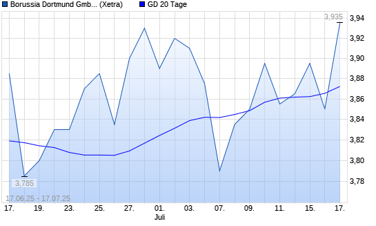 Mit dem Rücksetzer auf 3,84 EUR hat die Borussia Dortmund-Aktie am 16.07.2025 die 20-Tage-Linie nach unten gekreuzt.