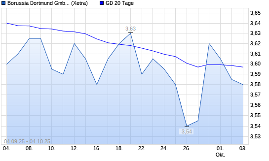 Mit dem Rücksetzer auf 3,58 EUR hat die Borussia Dortmund-Aktie am 03.10.2025 die 20-Tage-Linie nach unten gekreuzt.
