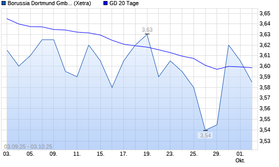 Mit dem Anstieg auf 3,60 EUR hat die Borussia Dortmund-Aktie am 02.10.2025 die 20-Tage-Linie nach oben gekreuzt.Die Borussia Dortmund-Aktie befindet sich seit dem 12.05.2025 im langfristigen ...weiterlesen