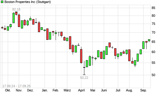 Mit dem Anstieg auf 66,56 EUR hat die Boston Properties-Aktie (ISIN US1011211018) am 16.09.2025 ein neues 6-Monats-Hoch erreicht und damit den Kurs vom 15.09.2025 eingestellt.
