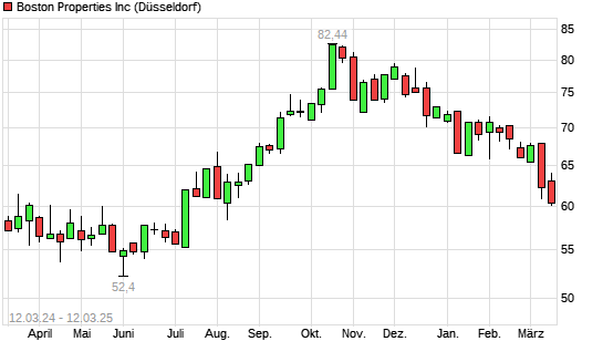 Mit dem Rücksetzer auf 59,88 EUR hat die Boston Properties-Aktie (ISIN US1011211018) am 11.03.2025 ein neues 6-Monats-Tief erreicht und damit den Kurs vom 06.03.2025 eingestellt.