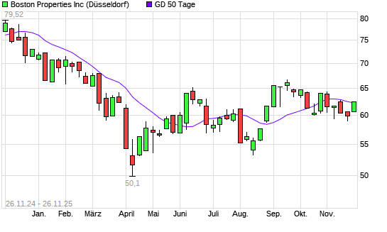 Mit dem Anstieg auf 62,60 EUR hat die Boston Properties-Aktie am 25.11.2025 die 50-Tage-Linie nach oben gekreuzt.