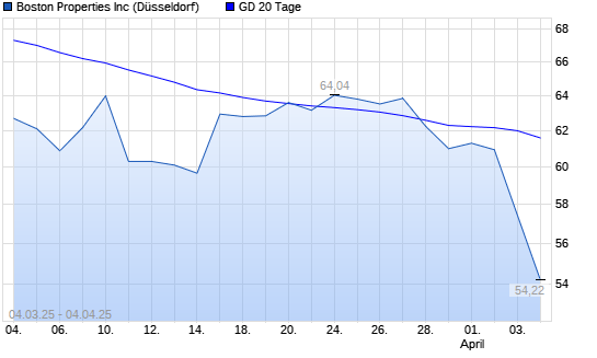 Mit dem Rücksetzer auf 56,68 EUR hat die Boston Properties-Aktie am 03.04.2025 die 20-Tage-Linie nach unten gekreuzt.