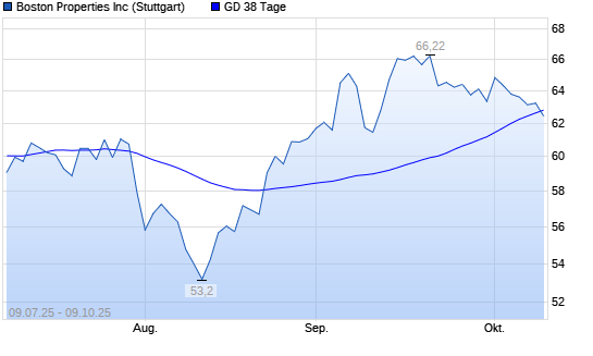 Mit dem Rücksetzer auf 62,70 EUR hat die Boston Properties-Aktie am 08.10.2025 die 38-Tage-Linie nach unten gekreuzt.