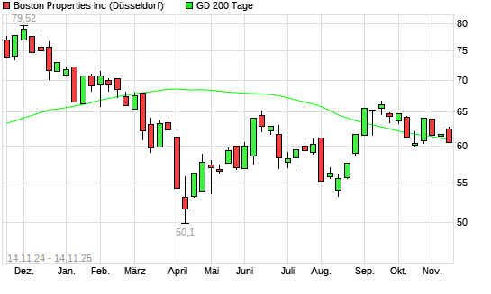 Mit dem Rücksetzer auf 60,66 EUR hat die Boston Properties-Aktie am 13.11.2025 die 200-Tage-Linie nach unten gekreuzt.Die Boston Properties-Aktie befand sich seit dem 07.11.2025 im langfristigen ...weiterlesen