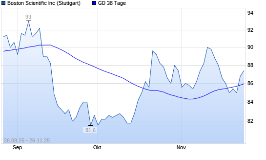 Mit dem Anstieg auf 86,00 EUR hat die Boston Scientific-Aktie am 25.11.2025 die 38-Tage-Linie nach oben gekreuzt.