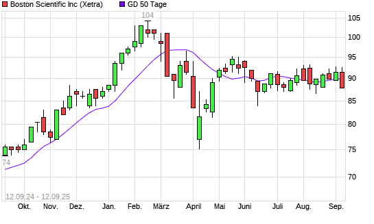 Mit dem Rücksetzer auf 88,40 EUR hat die Boston Scientific-Aktie am 11.09.2025 die 50-Tage-Linie nach unten gekreuzt.