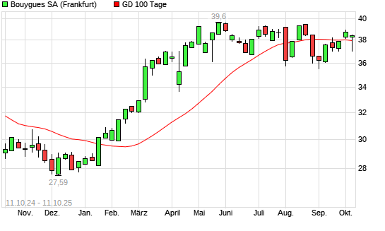 Mit dem Anstieg auf 38,43 EUR hat die Bouygues-Aktie am 10.10.2025 die 100-Tage-Linie nach oben gekreuzt.