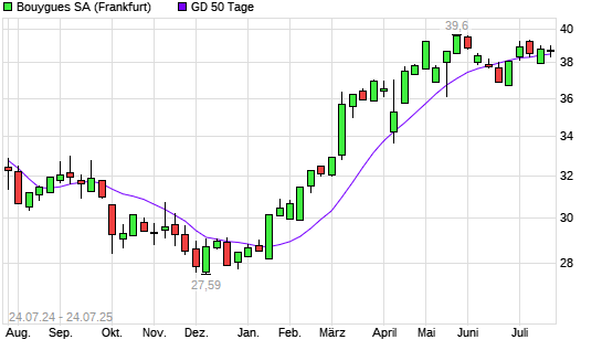 Mit dem Anstieg auf 38,73 EUR hat die Bouygues-Aktie am 23.07.2025 die 50-Tage-Linie nach oben gekreuzt.