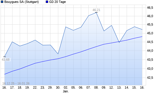 Mit dem Rücksetzer auf 44,71 EUR hat die Bouygues-Aktie am 15.01.2026 die 20-Tage-Linie nach unten gekreuzt.