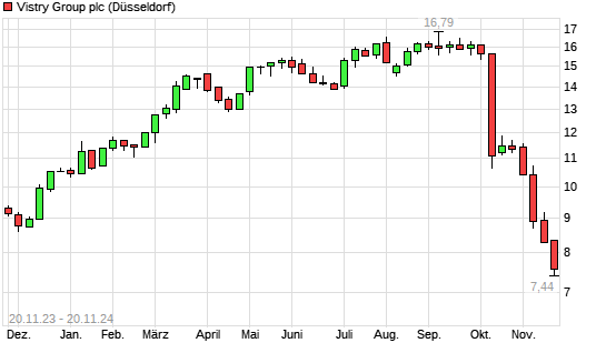 Mit dem Rücksetzer auf 7,91 EUR hat die Bovis Homes Group-Aktie (ISIN GB0001859296) am 19.11.2024 ein neues 12-Monats-Tief erreicht und damit den Kurs vom 18.11.2024 eingestellt.
