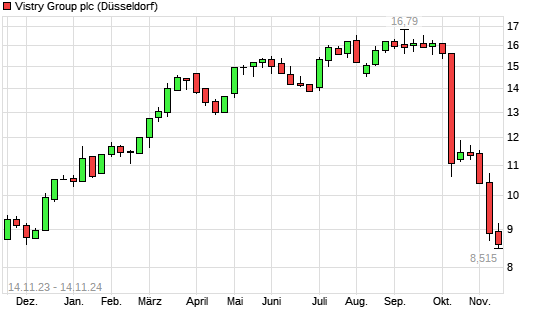 Mit dem Rücksetzer auf 8,56 EUR hat die Bovis Homes Group-Aktie (ISIN GB0001859296) am 13.11.2024 ein neues 6-Monats-Tief erreicht und damit den Kurs vom 12.11.2024 eingestellt.