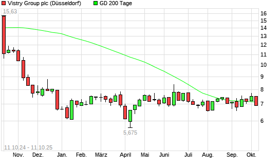 Mit dem Rücksetzer auf 7,07 EUR hat die Bovis Homes Group-Aktie am 10.10.2025 die 200-Tage-Linie nach unten gekreuzt.