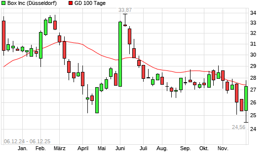 Mit dem Rücksetzer auf 27,10 EUR hat die Box-Aktie am 05.12.2025 die 100-Tage-Linie nach unten gekreuzt.