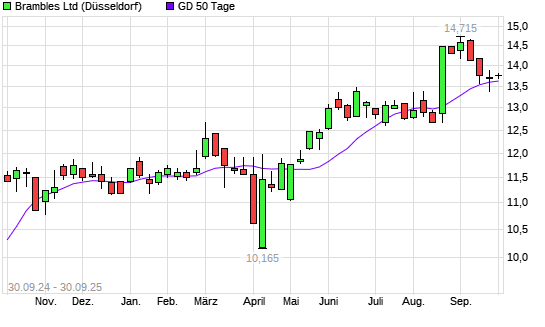 Mit dem Anstieg auf 13,69 EUR hat die Brambles-Aktie am 29.09.2025 die 50-Tage-Linie nach oben gekreuzt.