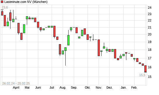 Mit dem Rücksetzer auf 15,50 EUR hat die Bravofly Rumbo Group I-Aktie (ISIN NL0010733960) am 24.02.2025 ein neues 3-Jahres-Tief erreicht und damit den Kurs vom 21.02.2025 eingestellt.