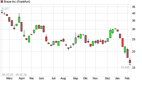 Mit dem Rücksetzer auf 15,85 EUR hat die Braze-Aktie (ISIN US10576N1028) am 04.02.2026 ein neues All-Time-Low erreicht und damit den Kurs vom 02.02.2026 eingestellt.