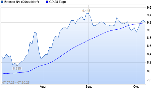 Mit dem Anstieg auf 9,15 EUR hat die Brembo-Aktie am 06.10.2025 die 38-Tage-Linie nach oben gekreuzt.