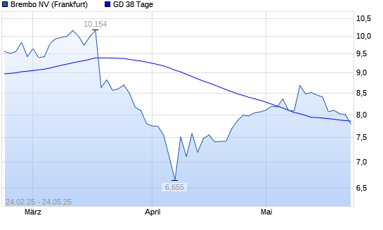 Mit dem Rücksetzer auf 7,78 EUR hat die Brembo-Aktie am 23.05.2025 die 38-Tage-Linie nach unten gekreuzt.