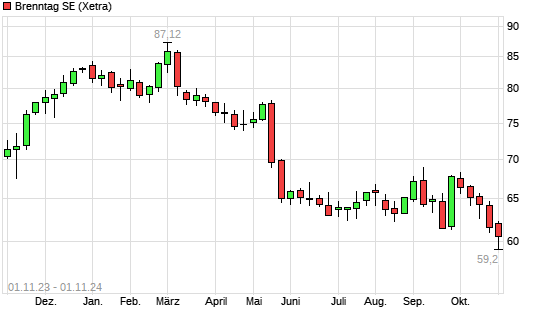 Mit dem Rücksetzer auf 59,54 EUR hat die Brenntag-Aktie (ISIN DE000A1DAHH0) am 31.10.2024 ein neues 12-Monats-Tief erreicht und damit den Kurs vom 12.08.2024 eingestellt.