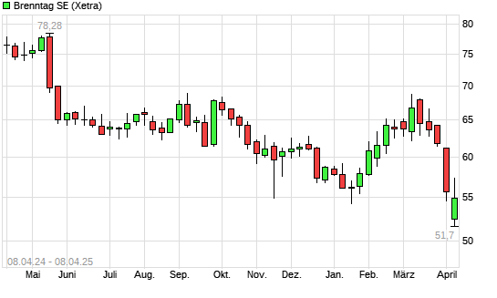 Mit dem Rücksetzer auf 55,16 EUR hat die Brenntag-Aktie (ISIN DE000A1DAHH0) am 07.04.2025 ein neues 3-Jahres-Tief erreicht und damit den Kurs vom 13.01.2025 eingestellt.