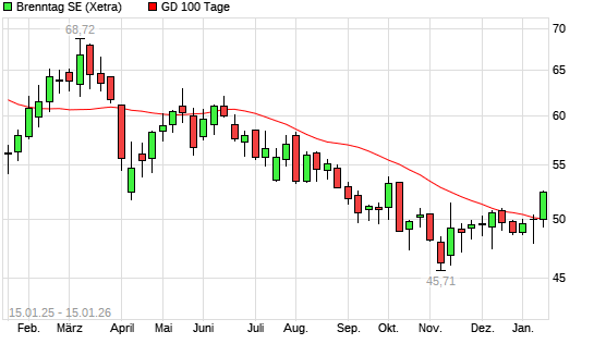 Mit dem Anstieg auf 51,76 EUR hat die Brenntag-Aktie am 14.01.2026 die 100-Tage-Linie nach oben gekreuzt.