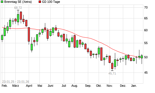 Mit dem Anstieg auf 50,56 EUR hat die Brenntag-Aktie am 22.01.2026 die 100-Tage-Linie nach oben gekreuzt.