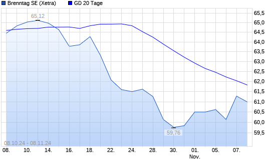 Mit dem Anstieg auf 62,72 EUR hat die Brenntag-Aktie am 07.11.2024 die 20-Tage-Linie nach oben gekreuzt.