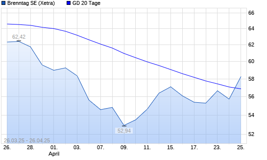 Mit dem Anstieg auf 58,00 EUR hat die Brenntag-Aktie am 25.04.2025 die 20-Tage-Linie nach oben gekreuzt.