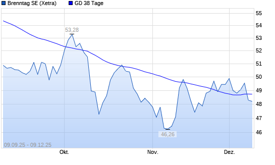 Mit dem Rücksetzer auf 48,54 EUR hat die Brenntag-Aktie am 08.12.2025 die 38-Tage-Linie nach unten gekreuzt.