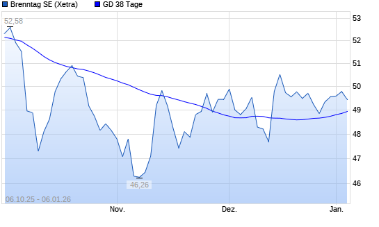 Mit dem Rücksetzer auf 48,76 EUR hat die Brenntag-Aktie am 05.01.2026 die 38-Tage-Linie nach unten gekreuzt.