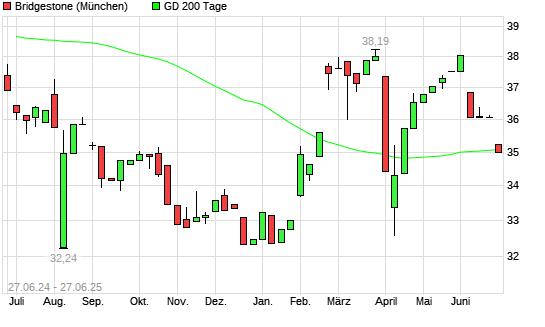 Mit dem Anstieg auf 34,78 EUR hat die Bridgestone-Aktie am 26.06.2025 die 200-Tage-Linie nach oben gekreuzt.